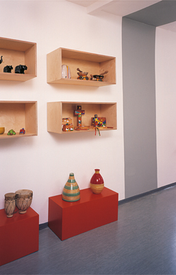 präsentiert werden. Diese sind in rechteckigen Kuben aus Birke-Multiplex
